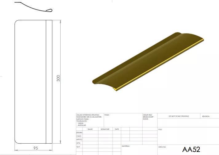 300x95mm Polished Brass Curved Pattern Letter Tidy
