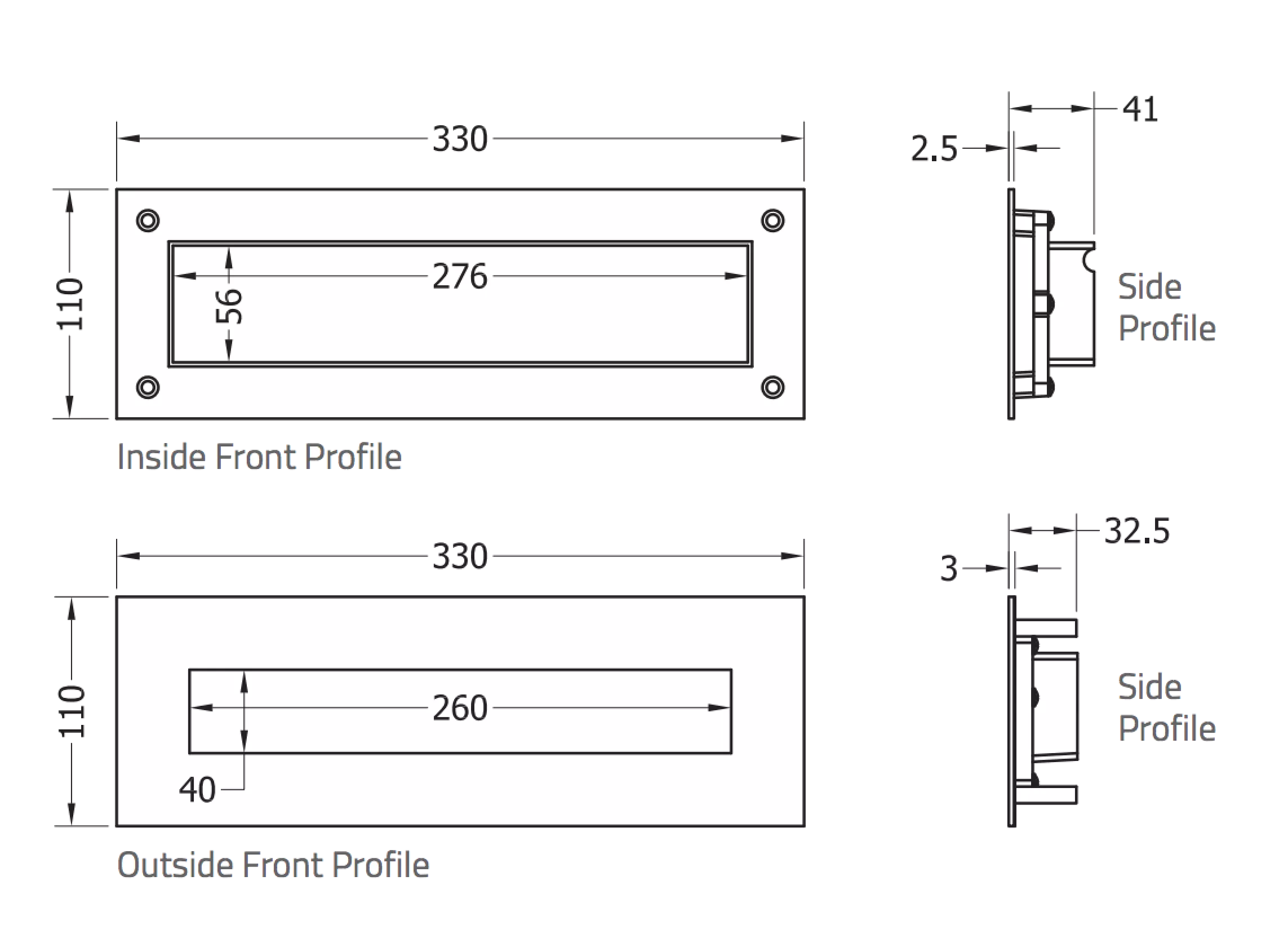 - Outer plate size: 330mm x 110mm