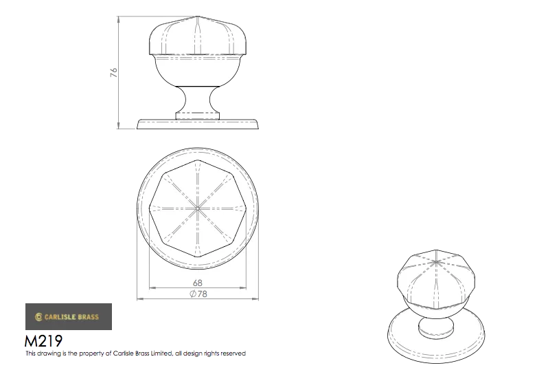 64mm dia. Polished Chrome Octagonal Centre Door Knob