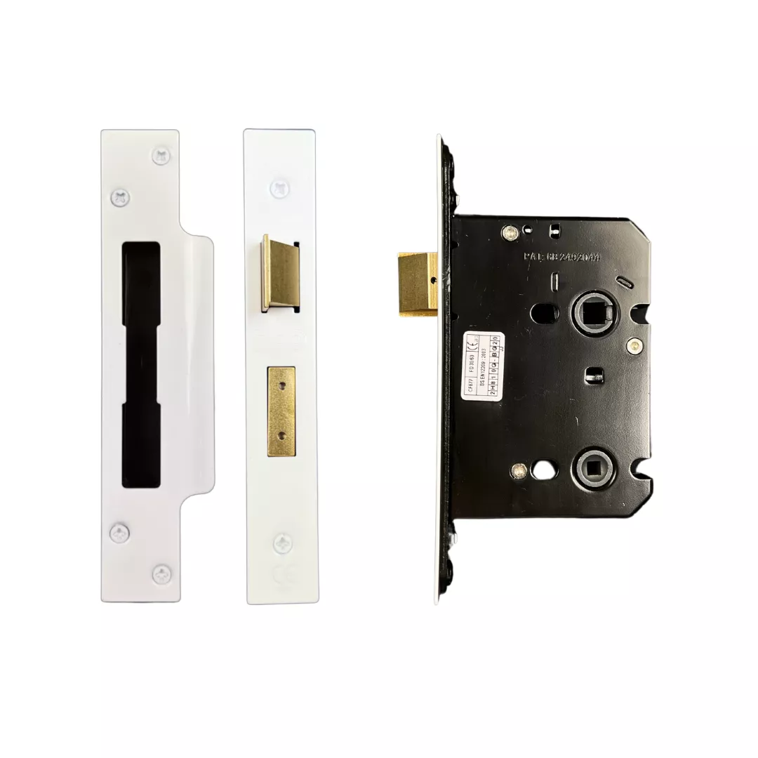 64mm Powder Coated White UK Mortice Bathroom Lock
