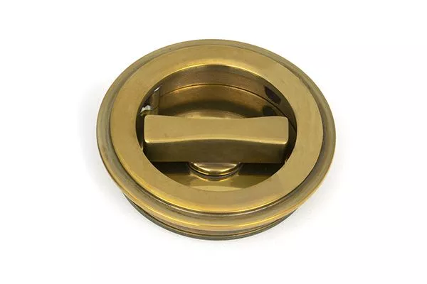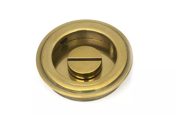 Aged Brass 60mm Art Deco Round Flush Pull Privacy Handle | 48324