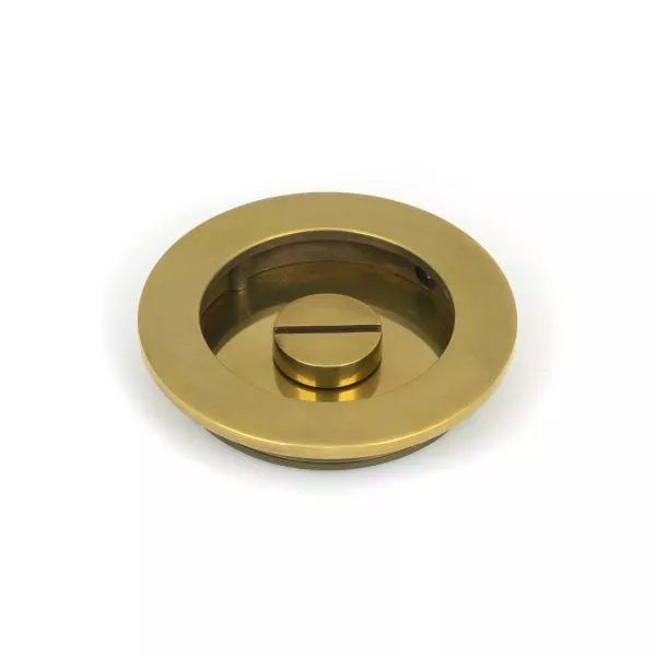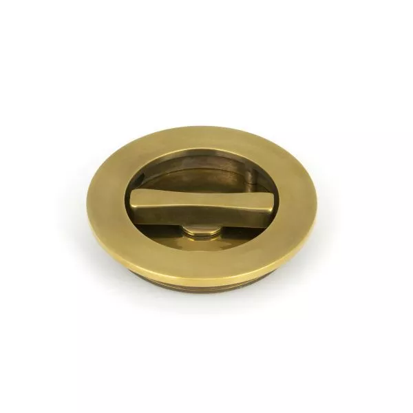 Aged Brass 75mm Art Deco Round Flush Pull Privacy Handle | 48325