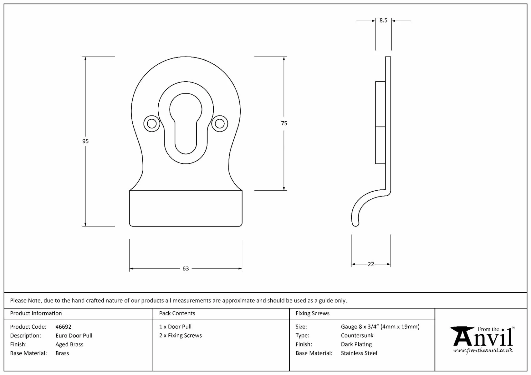 - Forged from solid brass, this euro pull is the perfect design choice for external doors, with many matching products available.
