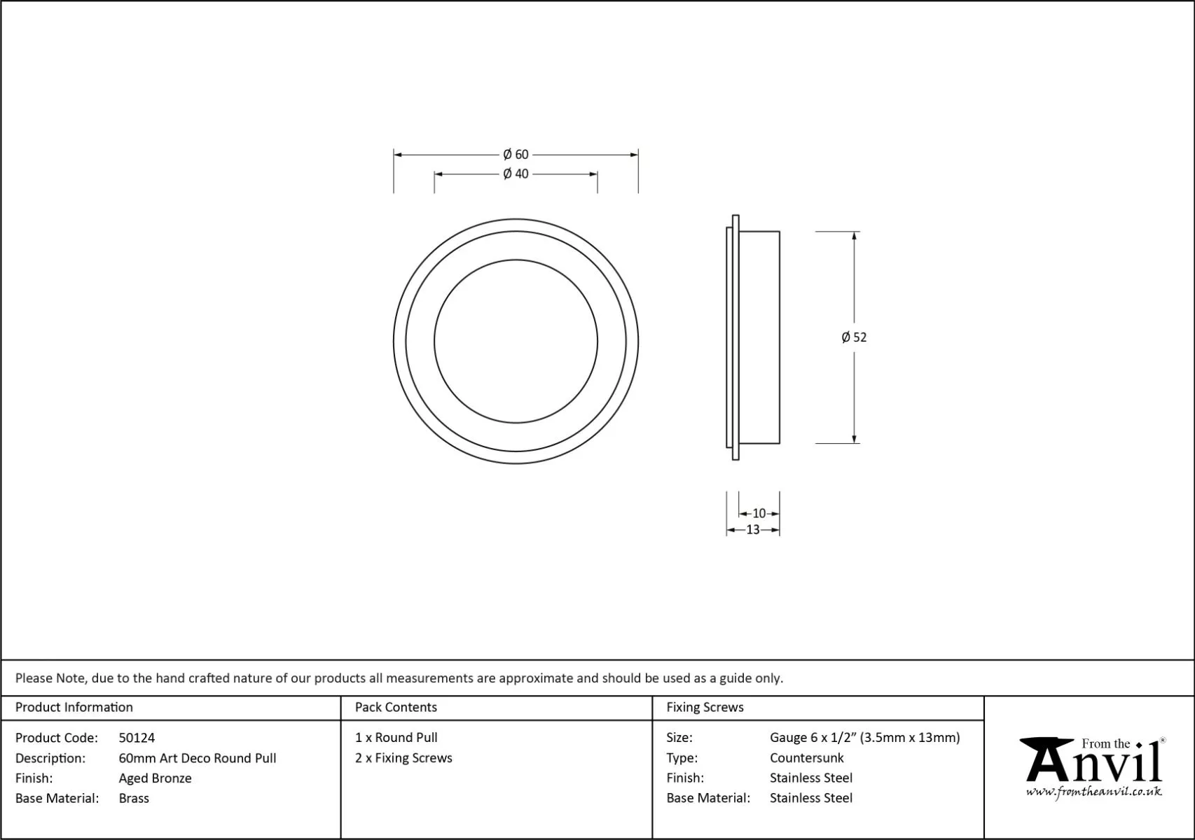 - Manufactured by From the Anvil/li>