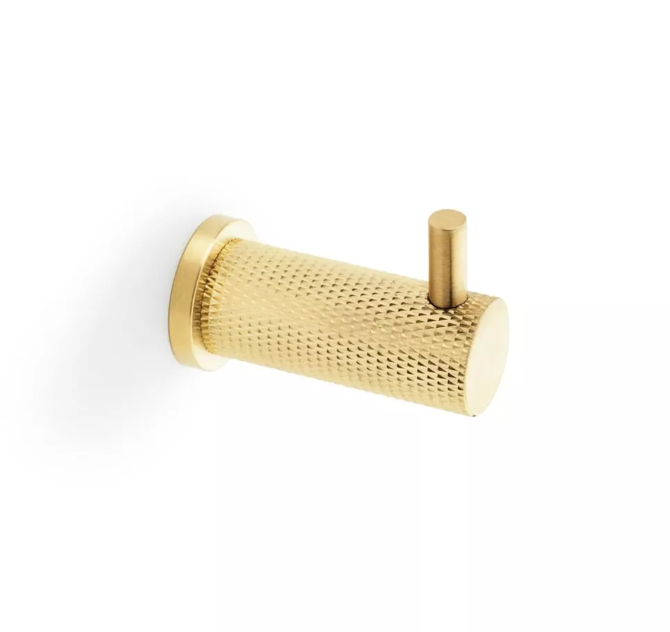 Alexander & Wilks Satin Brass PVD Brunel Knurled Coat Hook | AW775SBPVD