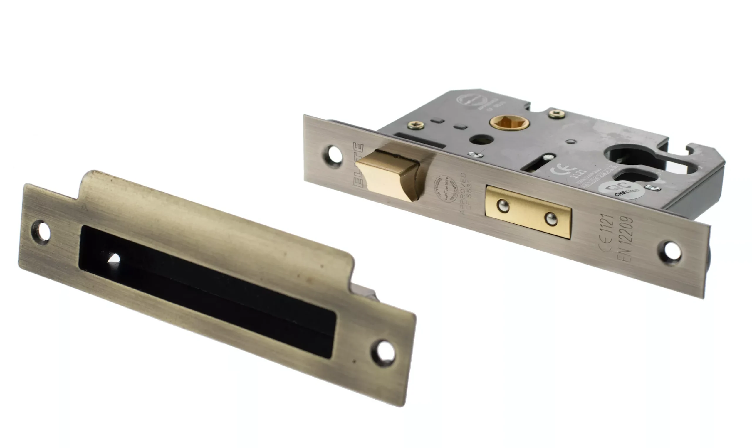 - Complete with matching forend and strike plate