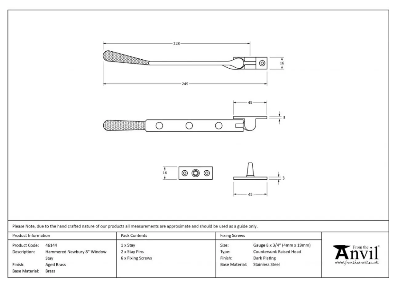 From the Anvil (8″”) Aged Brass Hammered Newbury Casement Window Stay | 46144