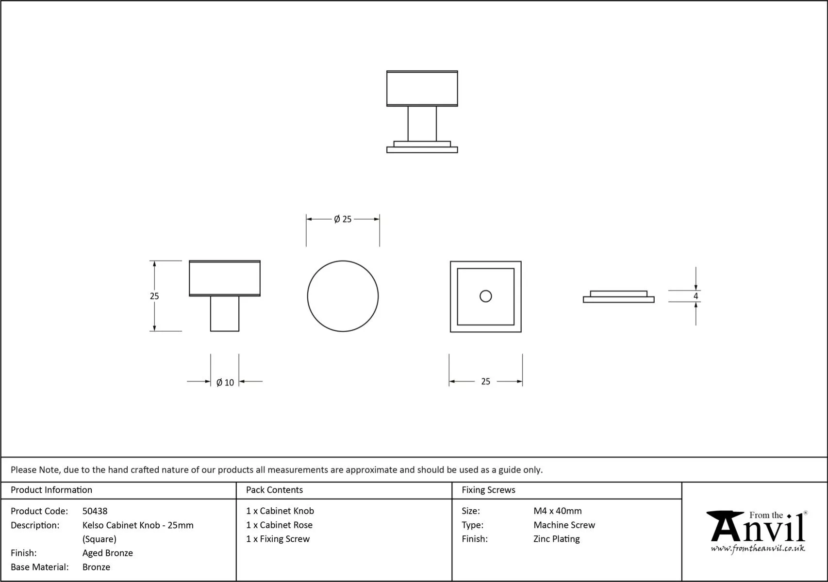 From the Anvil Aged Bronze Kelso 25mm Cabinet Knob (Square) | 50438