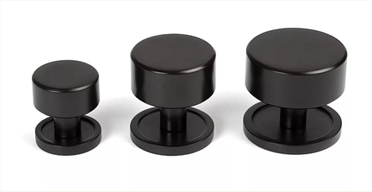 - This cabinet knob features a simple plain rose which complements the round shape of the knob.