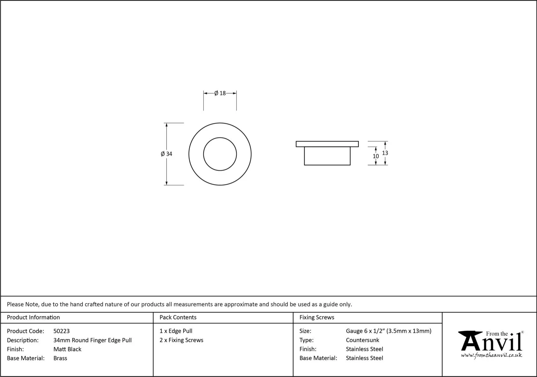 Anvil Matt Black 34mm Round Finger Edge Pull | 50223