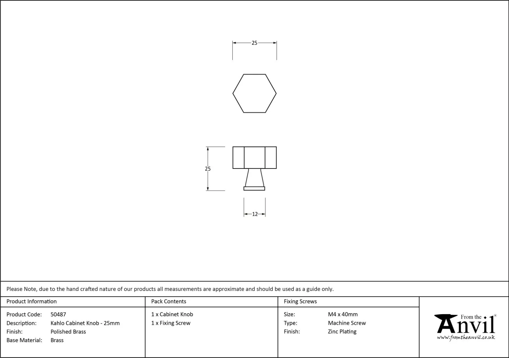 From the Anvil Polished Brass Kahlo 25mm Cabinet Knob | 50487/p>