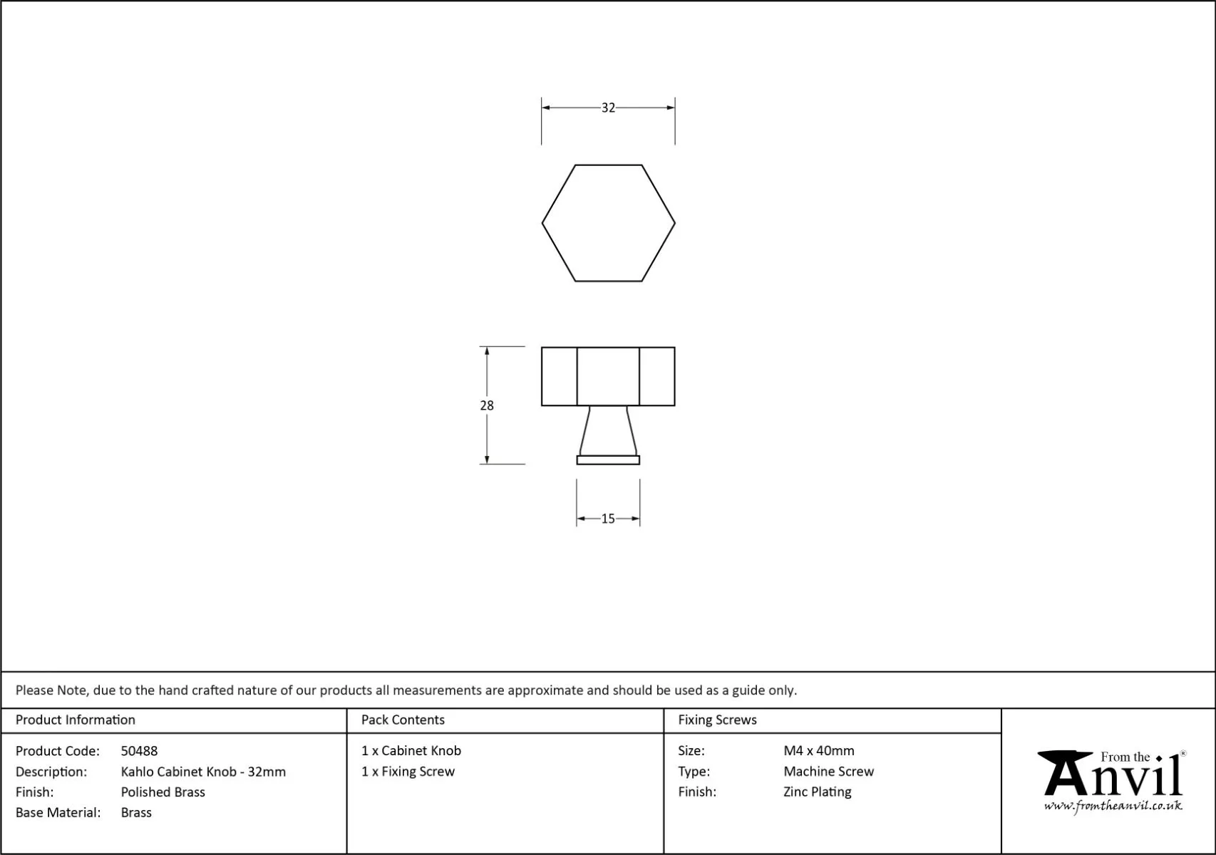 From the Anvil Polished Brass Kahlo 32mm Cabinet Knob | 50488/p>