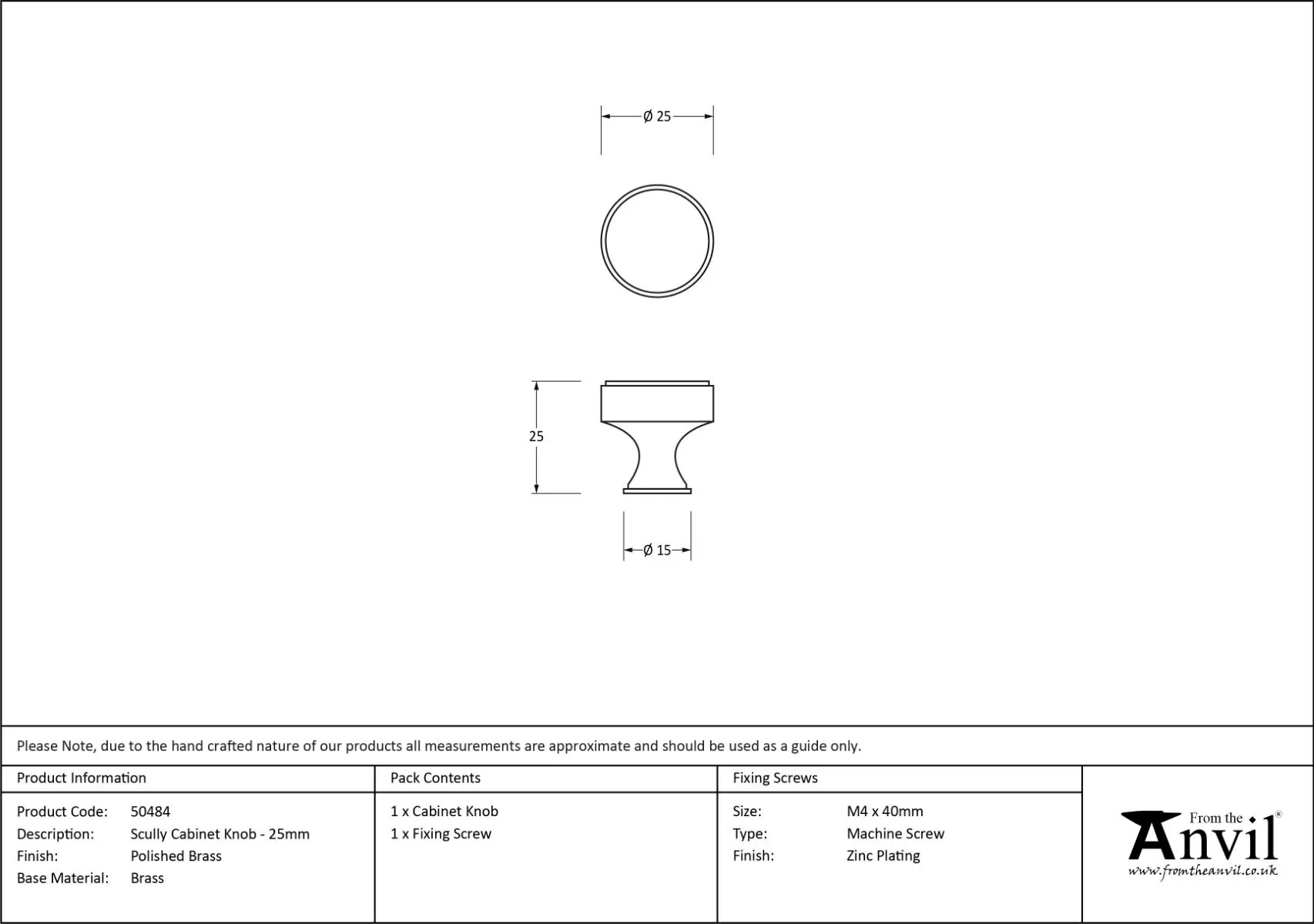 From the Anvil Polished Brass Scully 25mm Cabinet Knob | 50484/p>