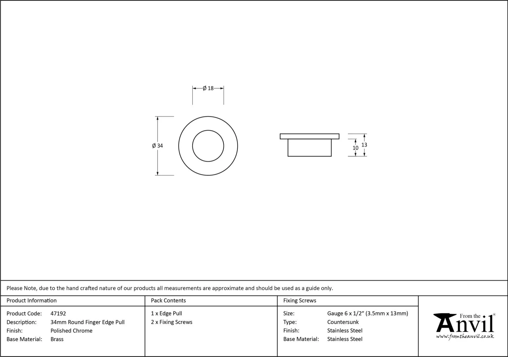 Anvil Polished Chrome 34mm Round Finger Edge Pull | 47192