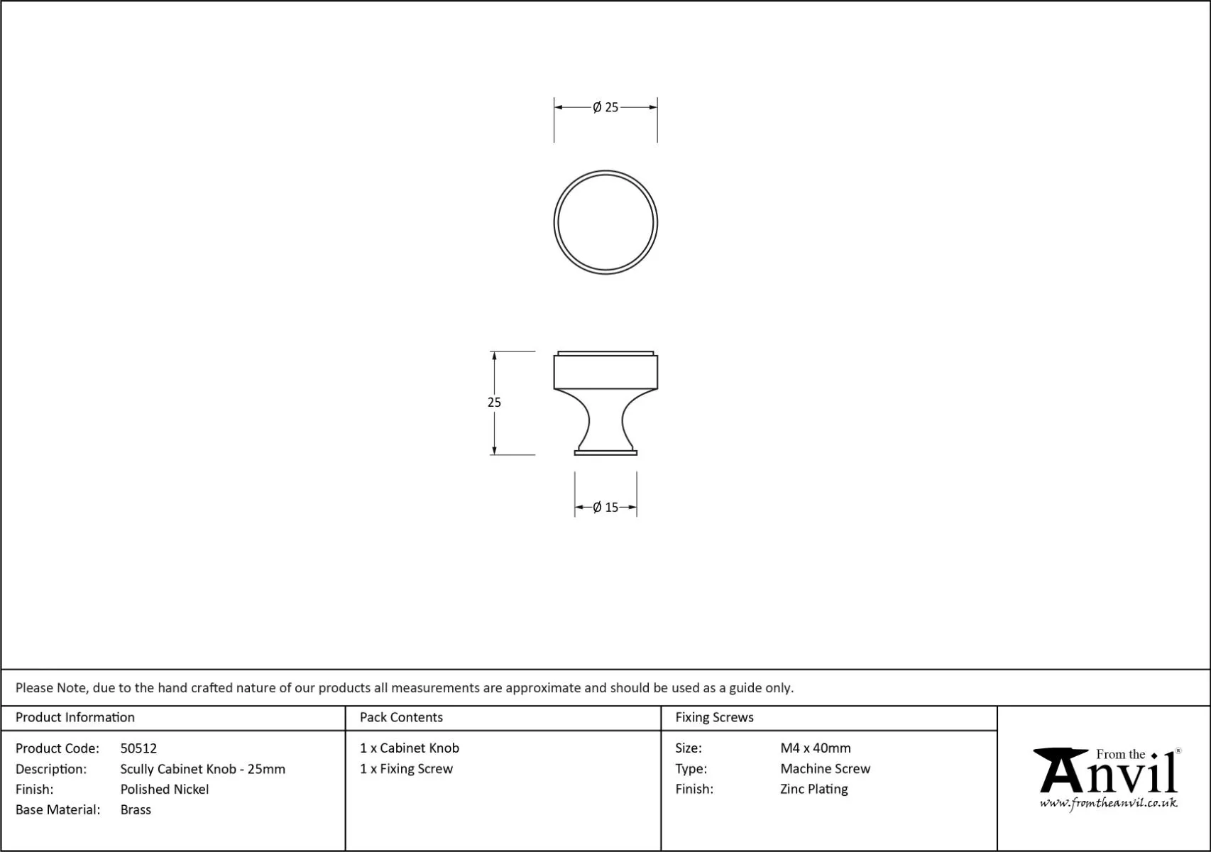 From the Anvil Polished Nickel Scully 25mm Cabinet Knob | 50512/p>