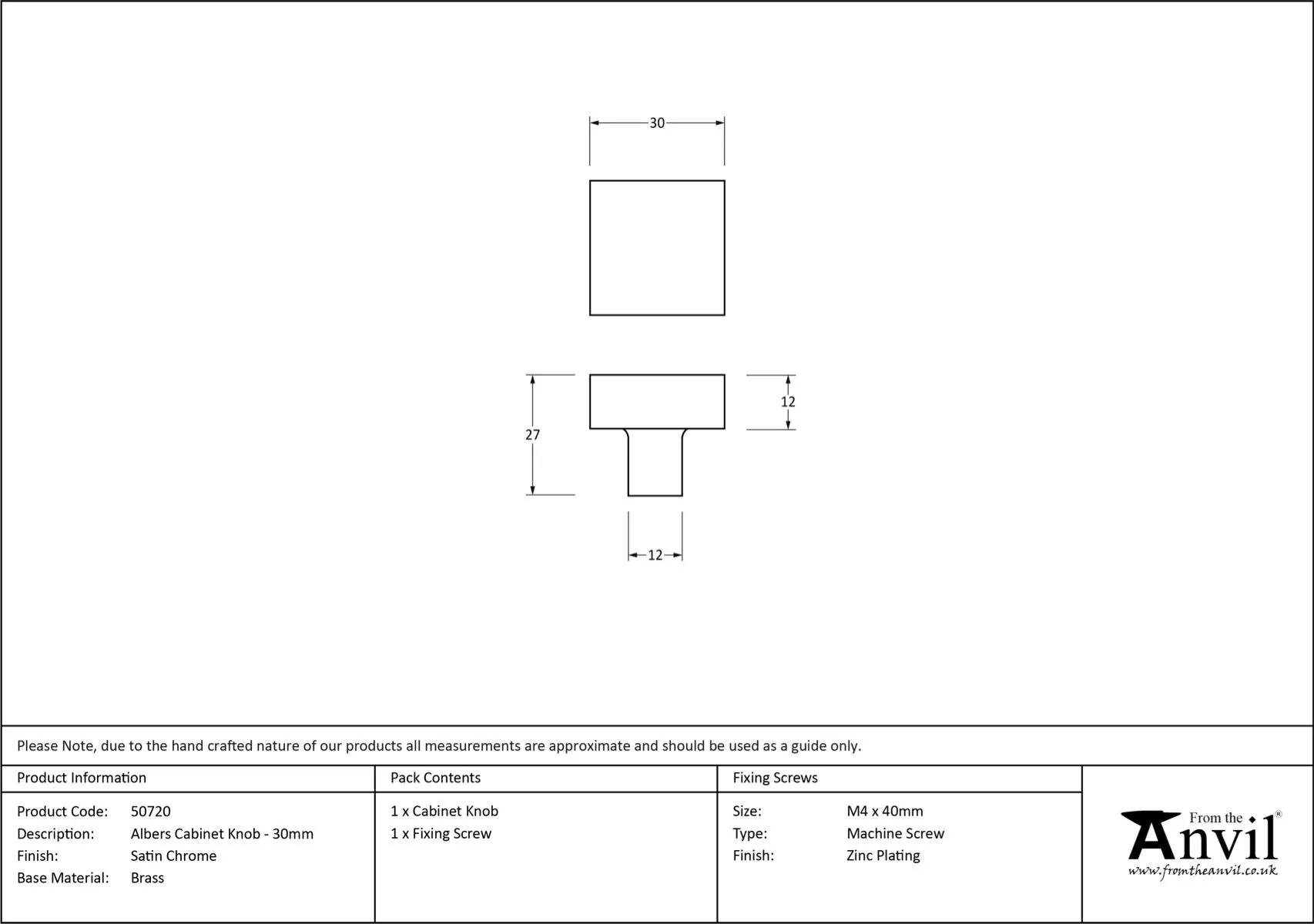 From The Anvil Satin Chrome Albers 30mm Cabinet Knob | 50720