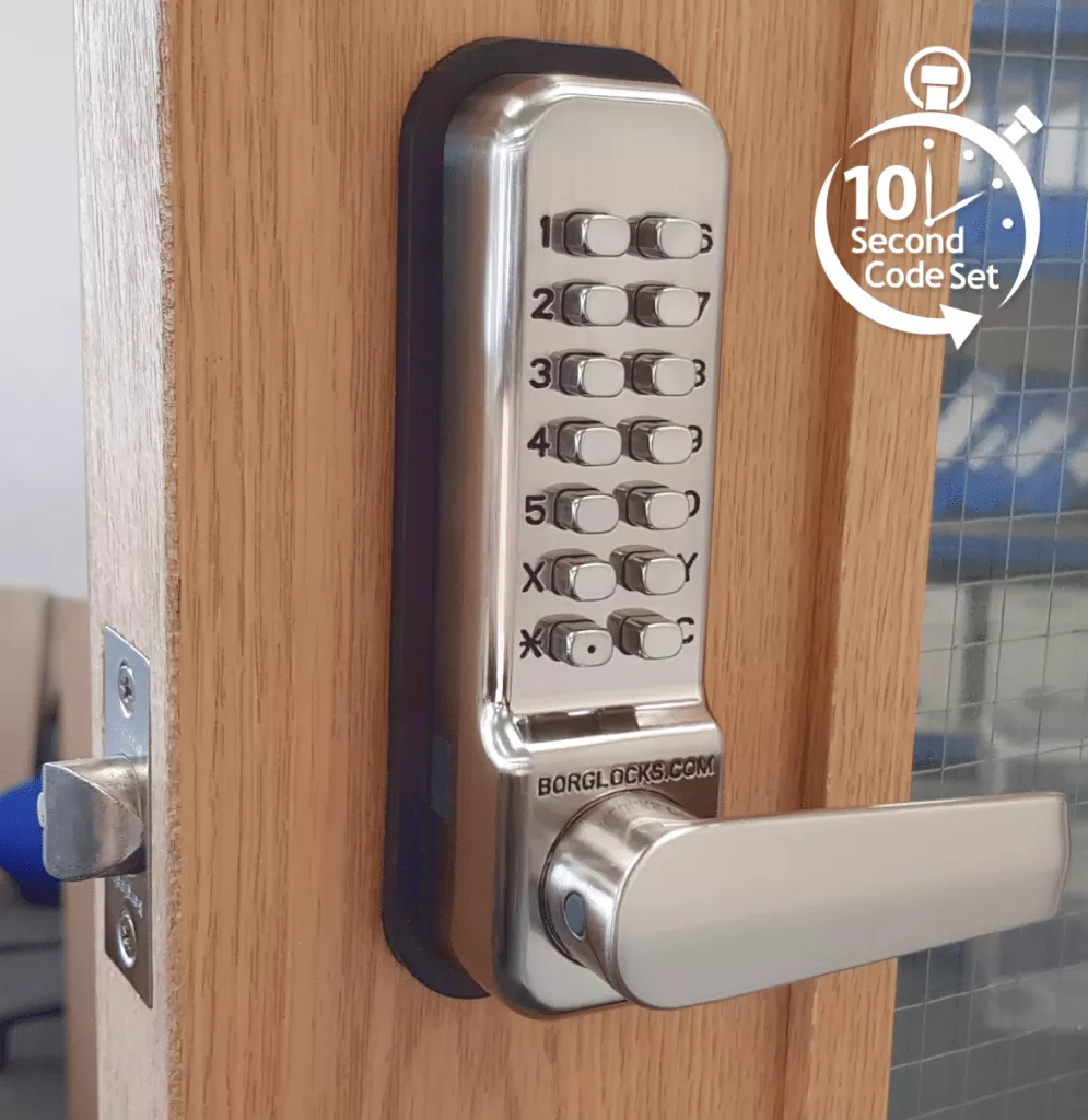 Borg 2401 Easicode Pro Satin Stainless Steel Digital Holdback Lock with tubular latch
