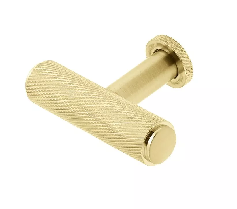 Burlington Satin Brass Knurled T Bar Cupboard Knob | BUR401SB