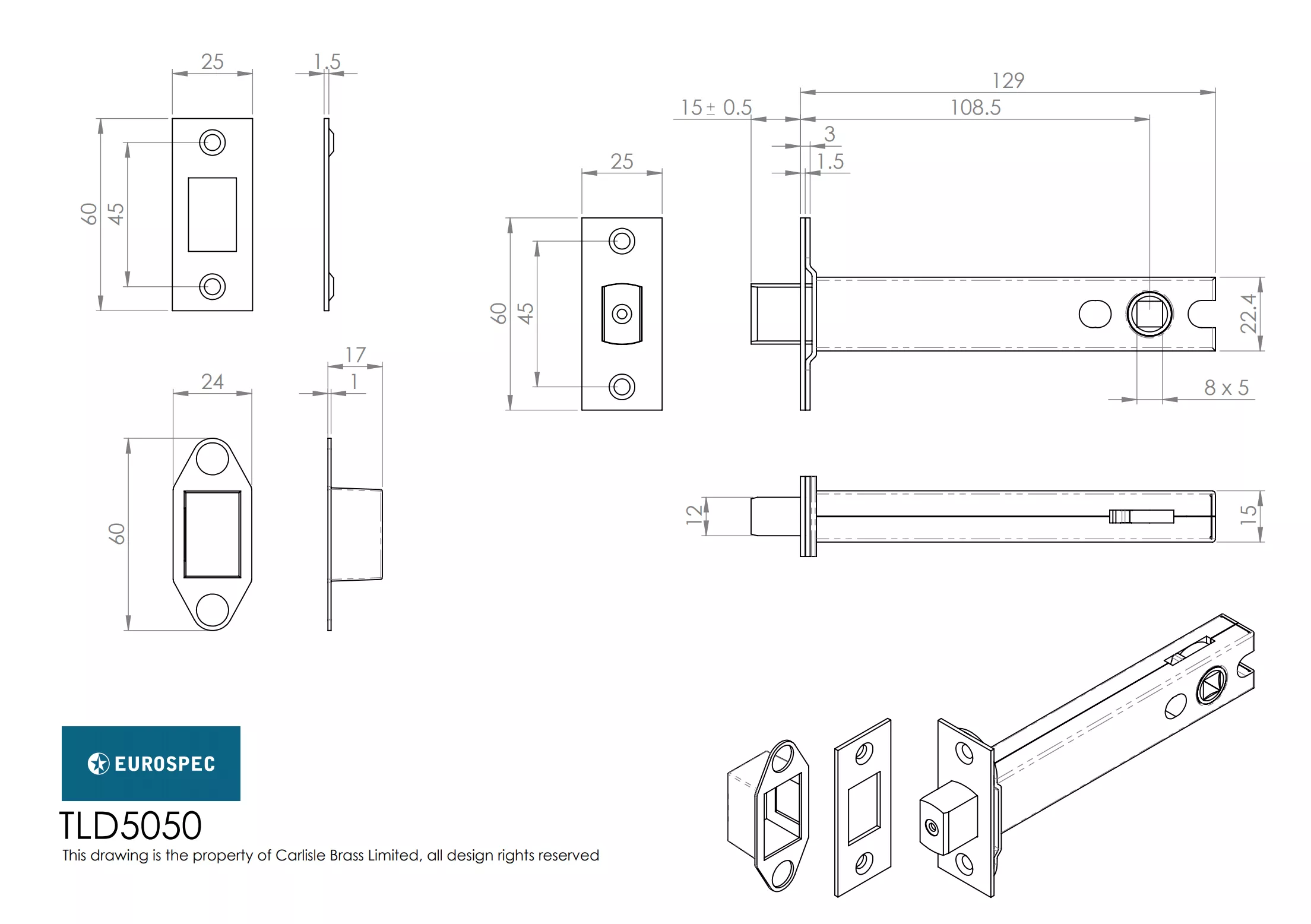 129mm Satin Brass Easi T Tubular Deadbolt | TLD5050SB