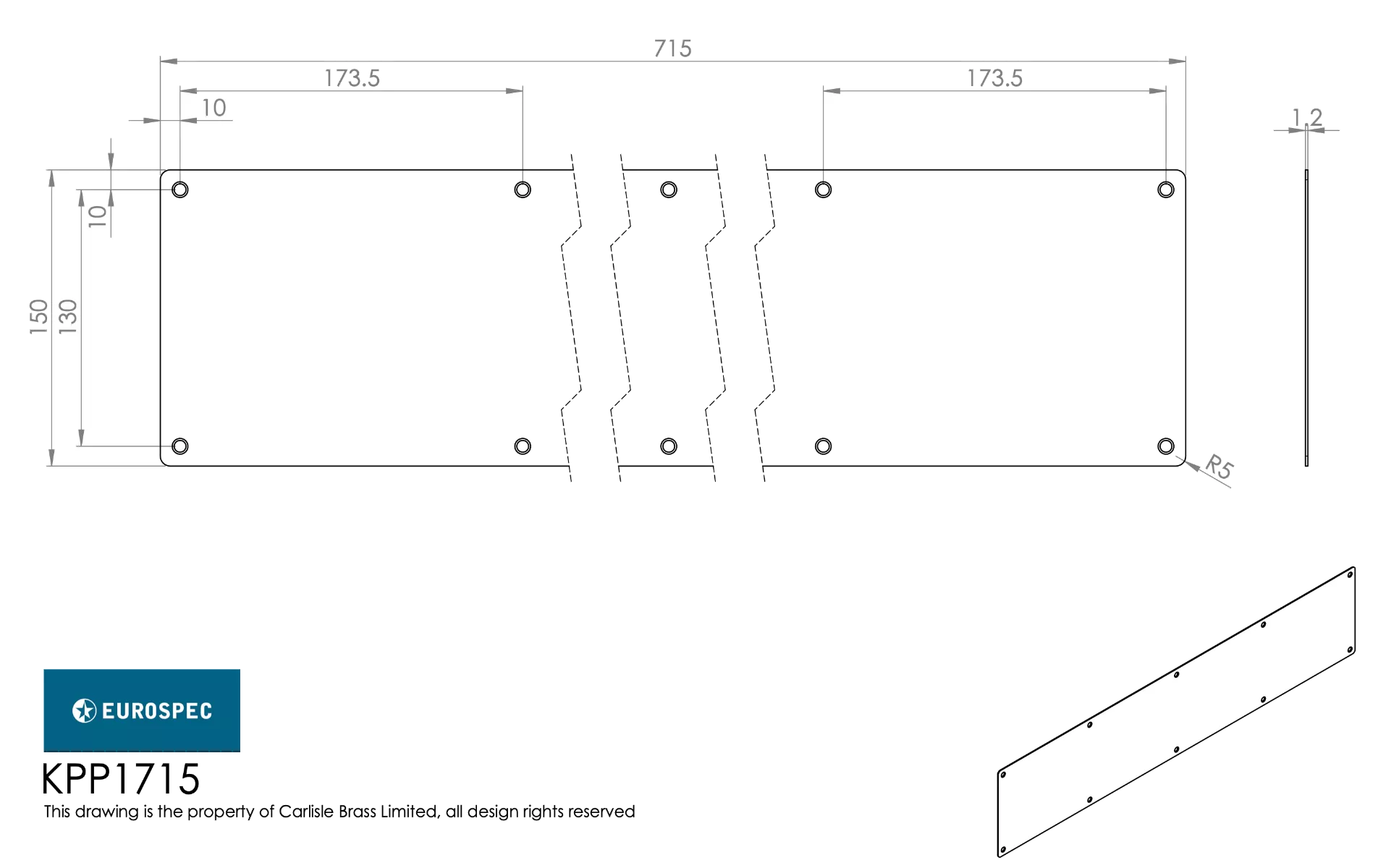 715 x 150mm Eurospec Satin Stainless Kicking Plates | KPP1715SSS