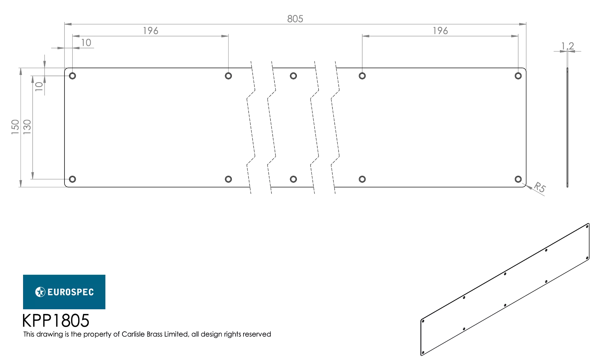 805 x 150mm Eurospec Satin Stainless Kicking Plates | KPP1805SSS