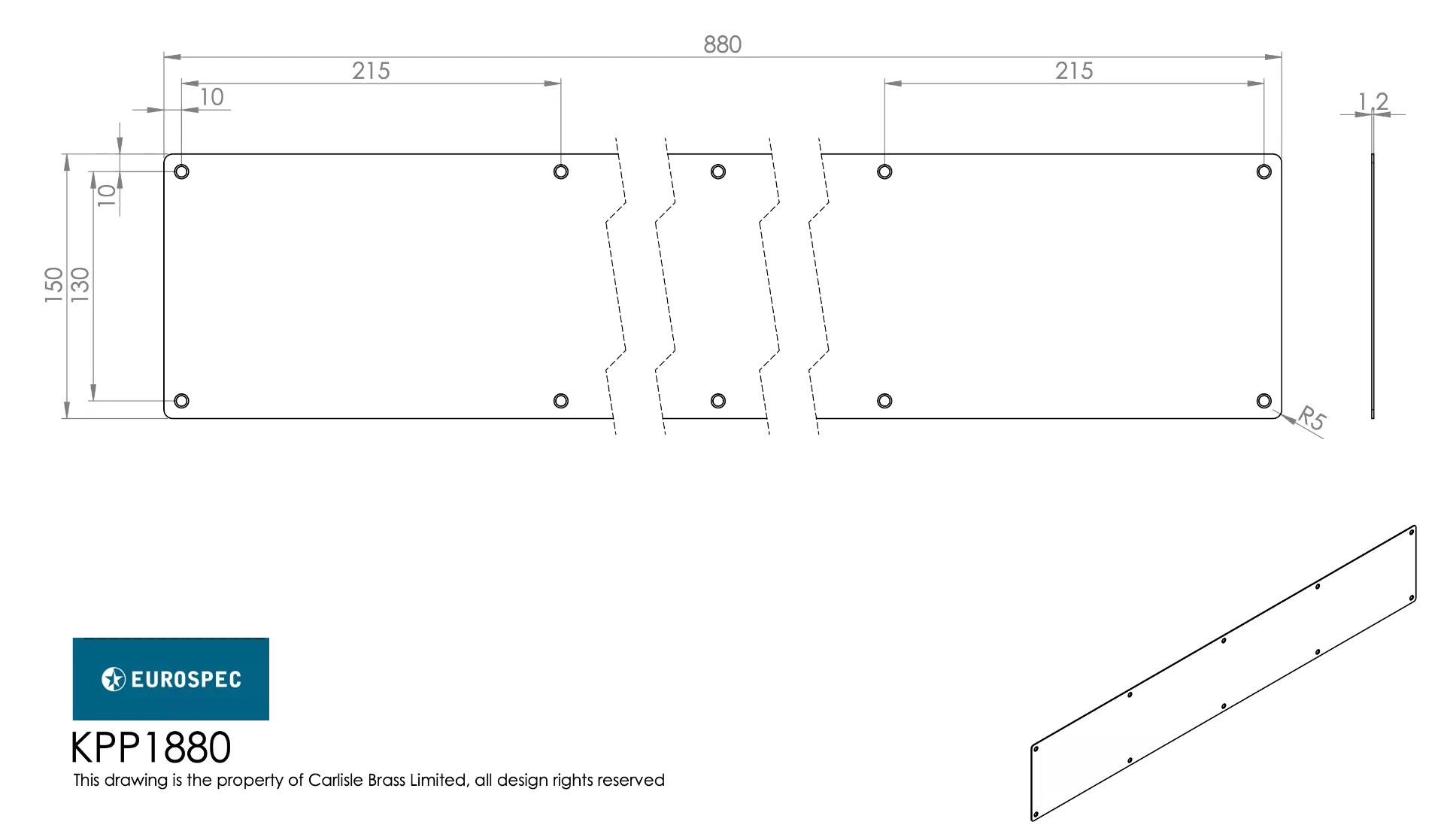 880 x 150mm Eurospec Satin Stainless Kicking Plates | KPP1880SSS