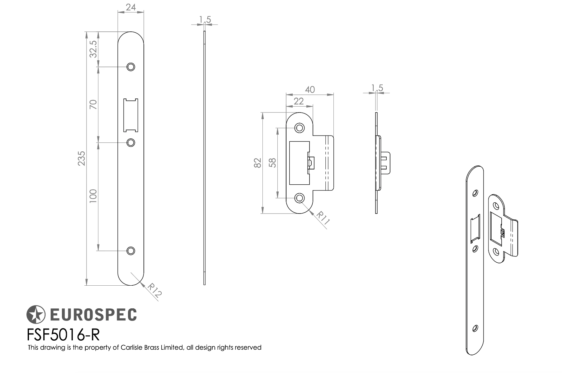 - Complete with F5016-R Radiused polished stainless steel faceplate