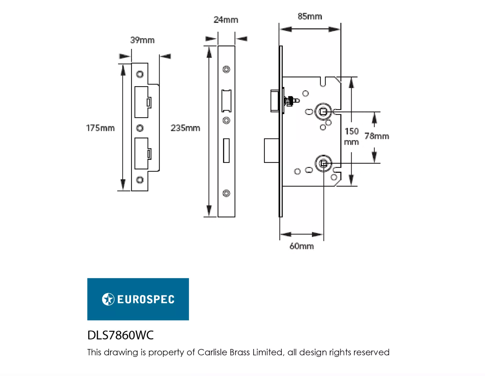 Satin Brass Easi T Din Bathroom Lock | DLS7860WCSB