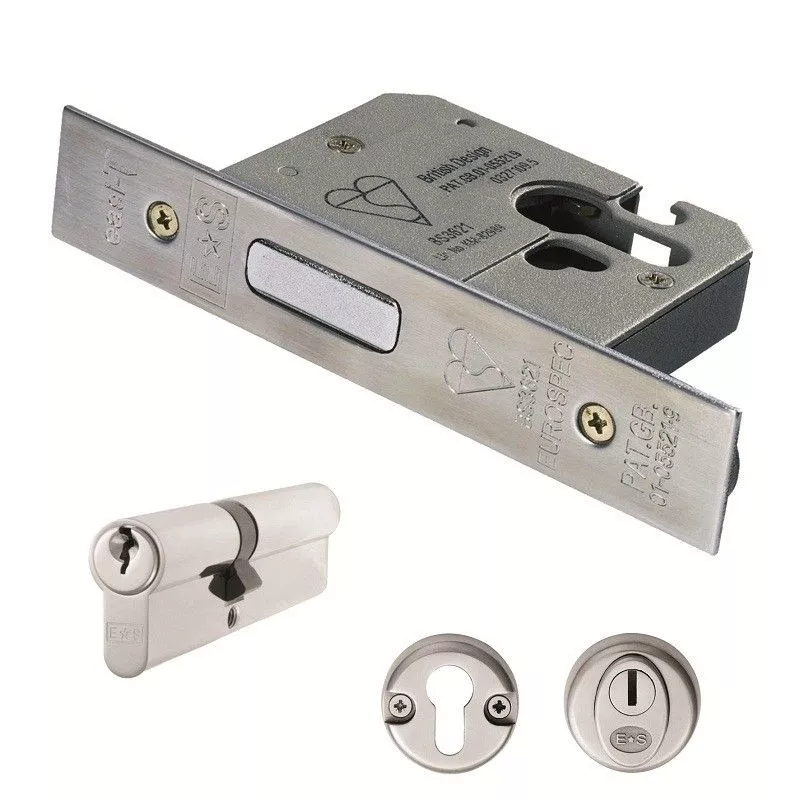 Set Satin Stainless Steel BS Euro Cylinder Deadlock with double key cylinder