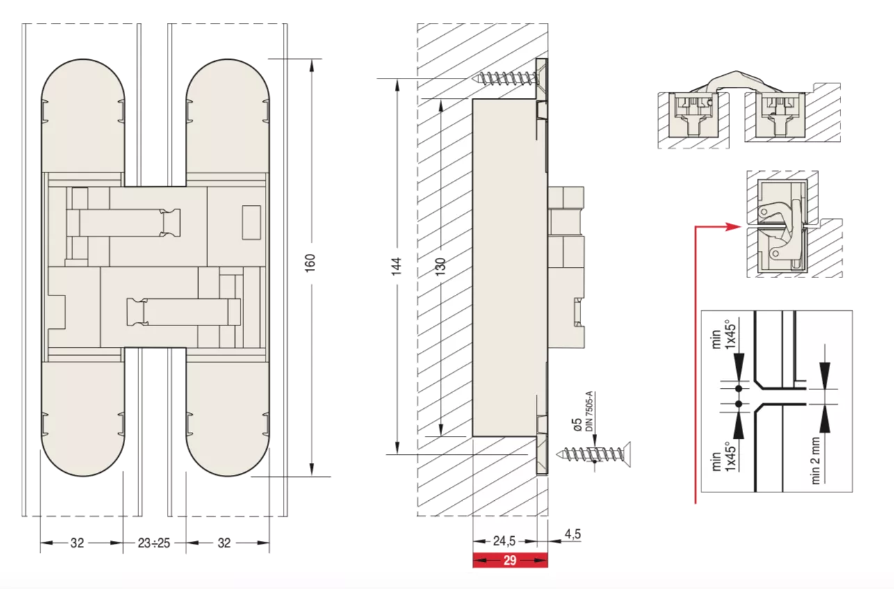 - Concealed heavy duty hinge