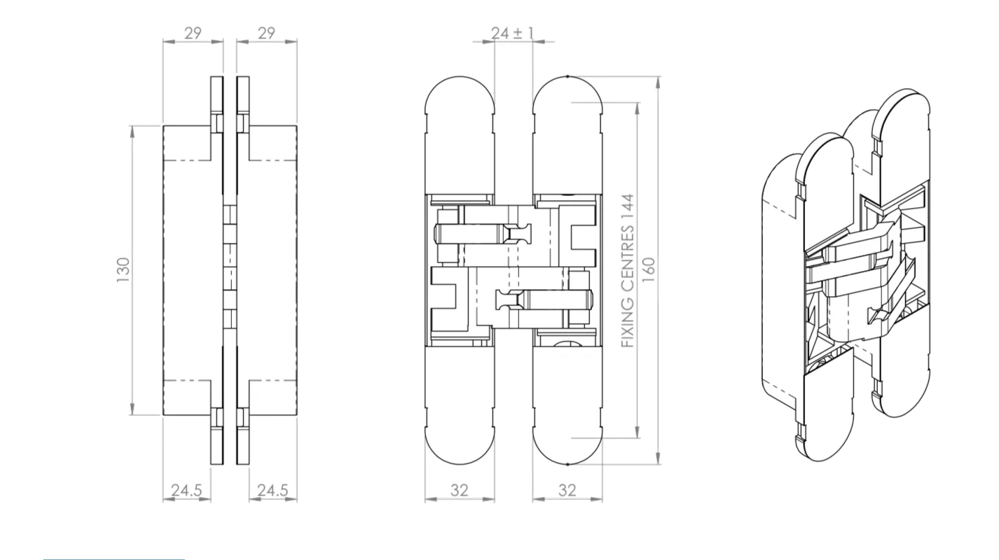 - Concealed heavy duty hinge