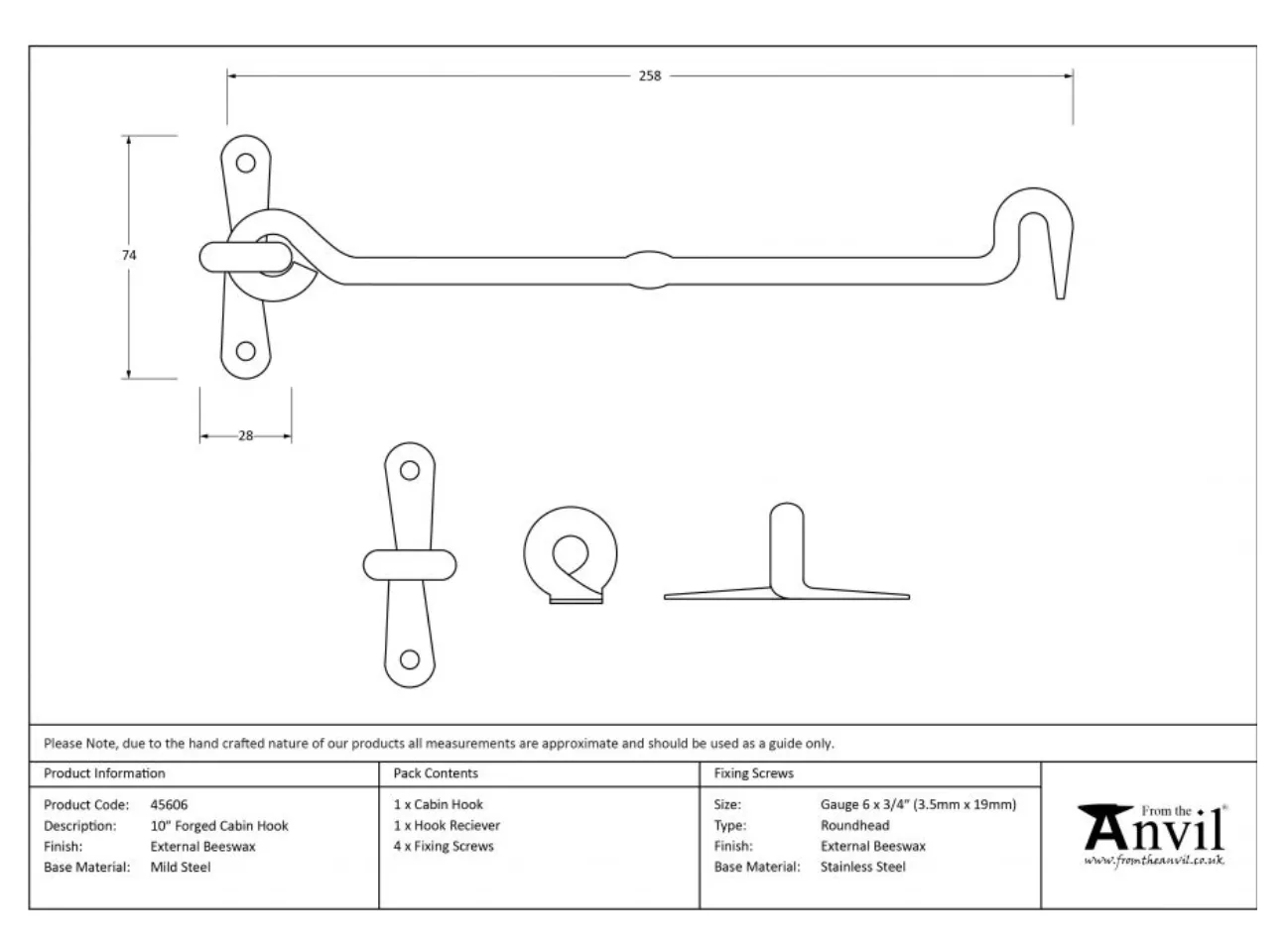 From the Anvil 10″ (268mm) External Beeswax Forged Cabin Hook | 45606
