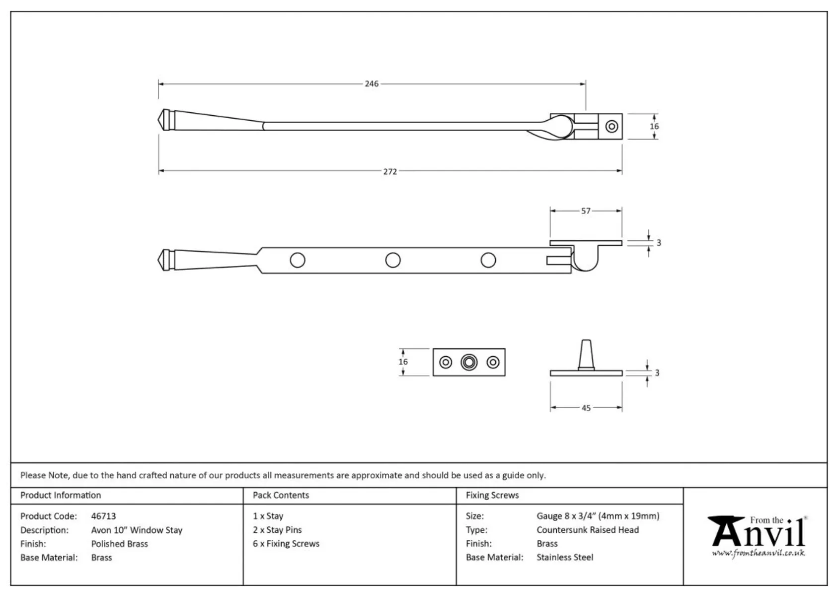 From the Anvil (10″) Polished Brass Avon Casement Window Stay | 46713