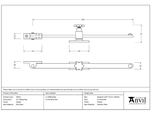 From the Anvil (12″”) Pewter Sliding Stay | 49914
