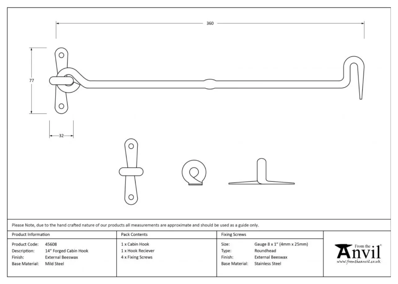 From the Anvil 16″ (413mm) External Beeswax Forged Cabin Hook | 45609