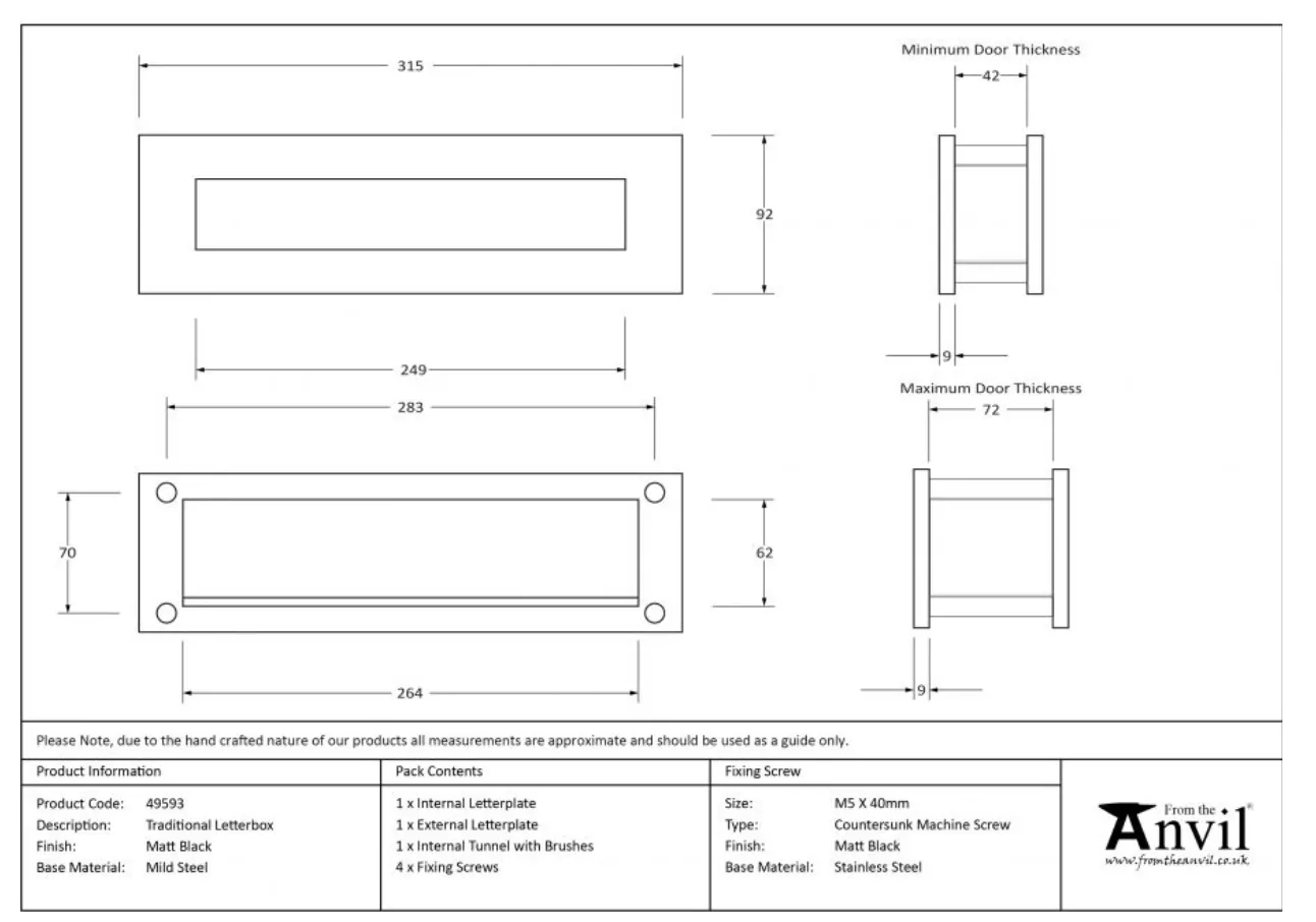 From the Anvil 315mm Matt Black Traditional Letterbox | 49593