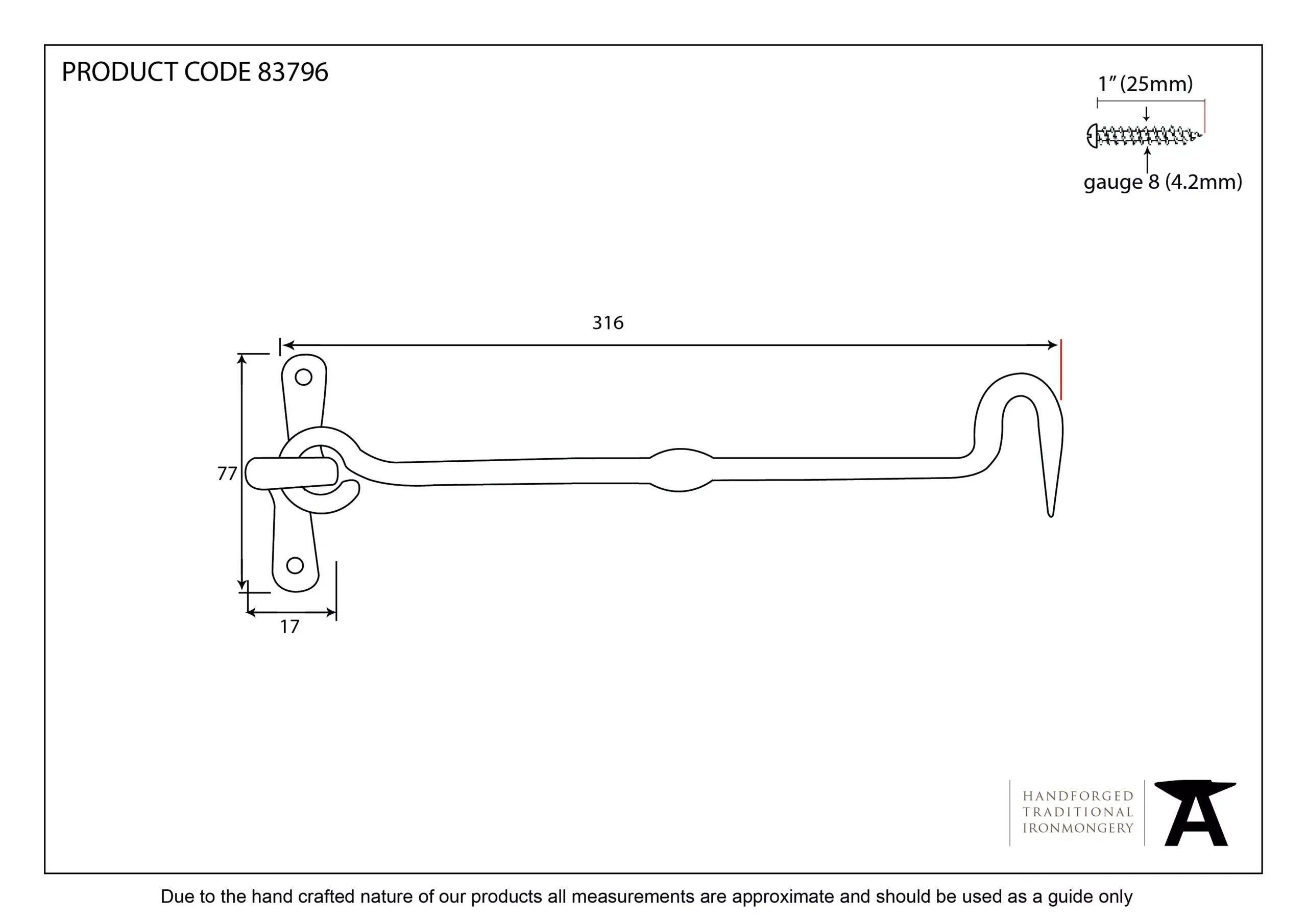 From the Anvil 316mm Pewter Forged Cabin Hook | 83796