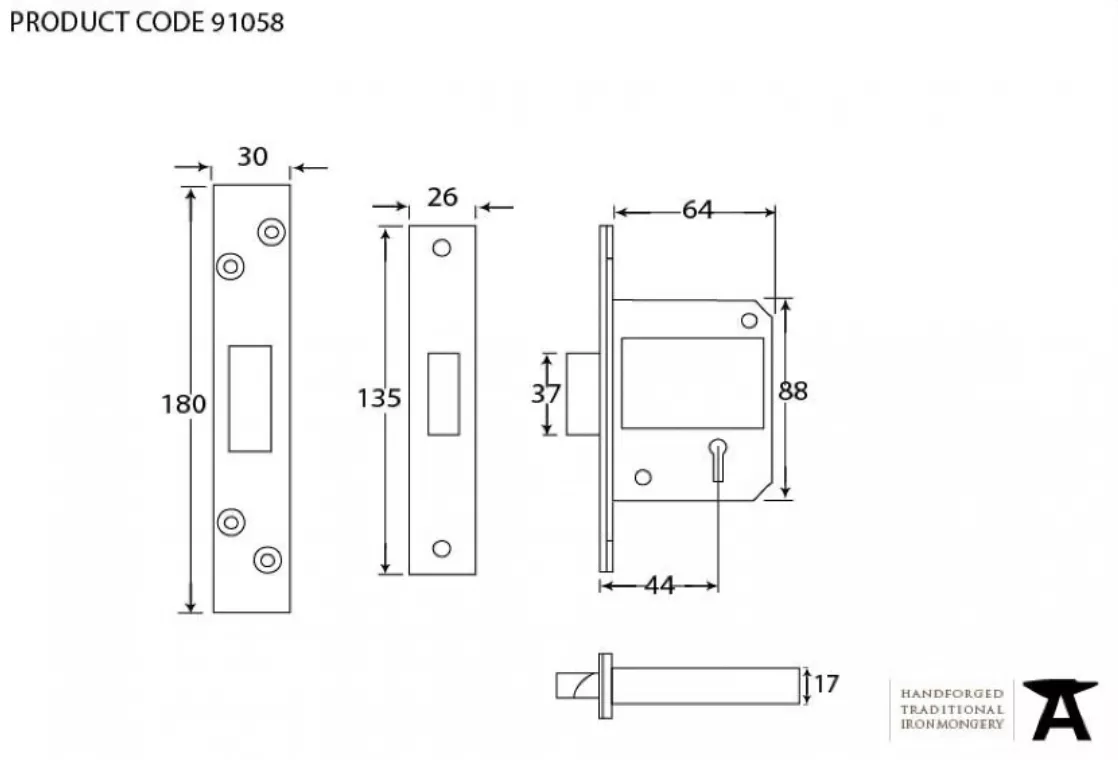 From the Anvil 64mm Black British Standard 5 Lever Deadlock | 91058