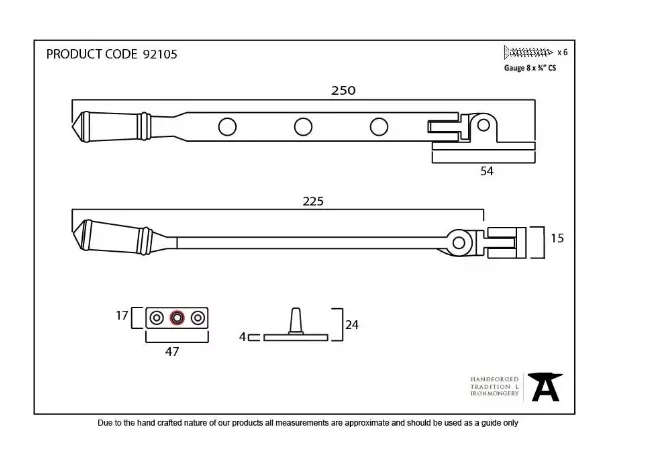 From the Anvil (8″) Black Regency Casement Window Stay | 92105