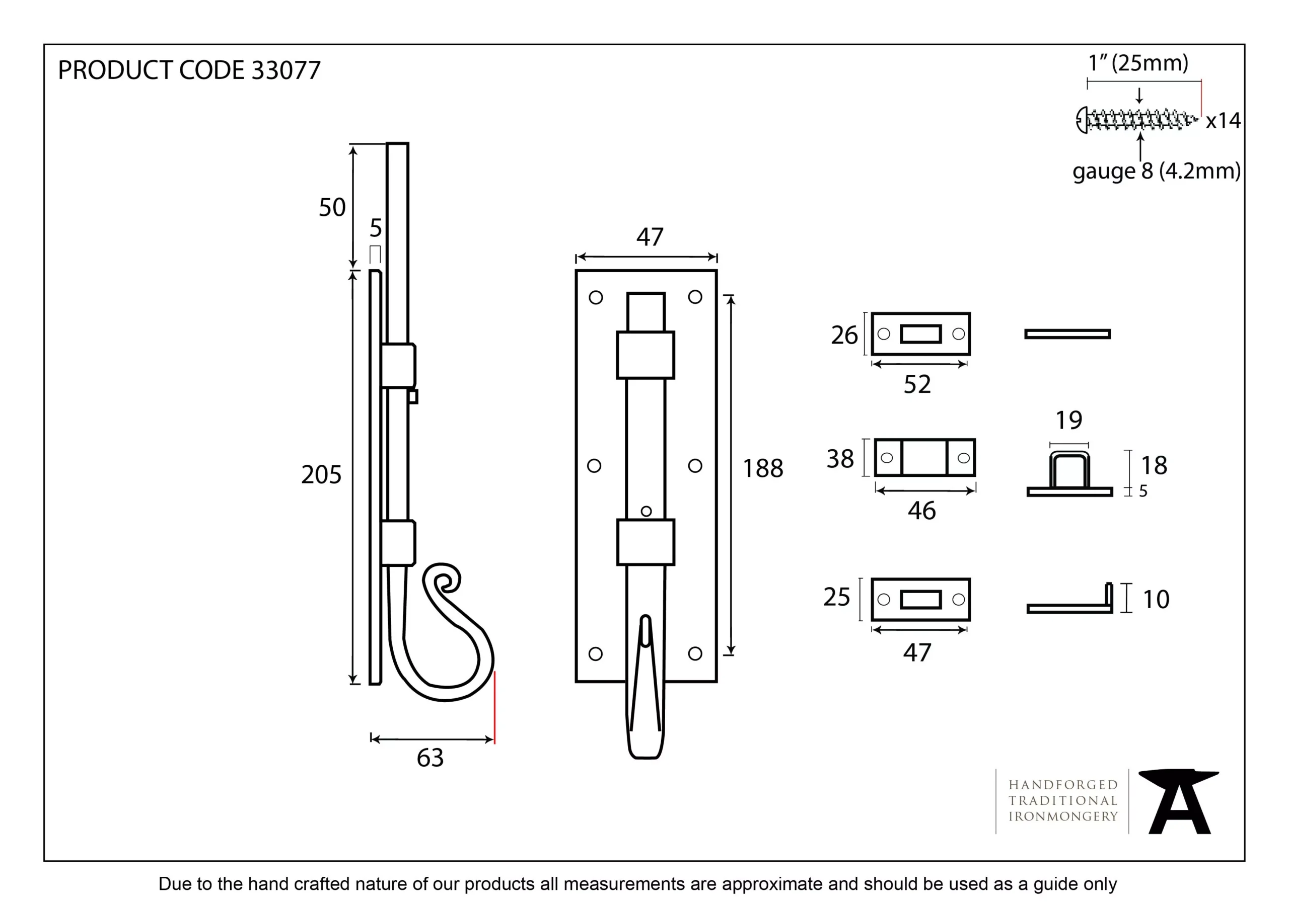 From the Anvil 8″ Pewter Straight Shepherds Crook Door Bolt | 33077
