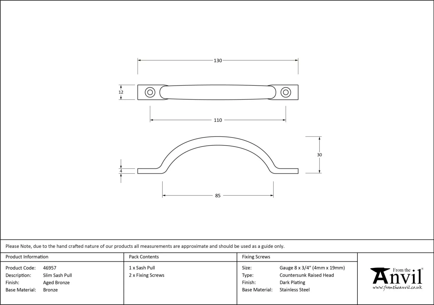 - Manufactured for From the Anvil
