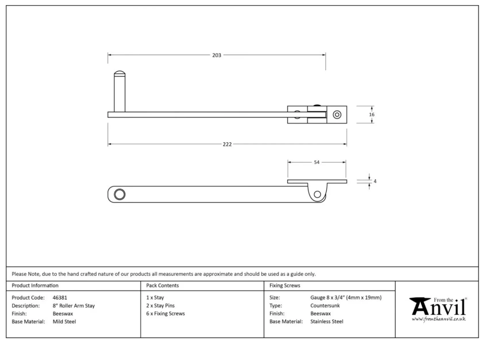 From the Anvil Beeswax 203mm (8″) Window Roller Arm Stay | 46381