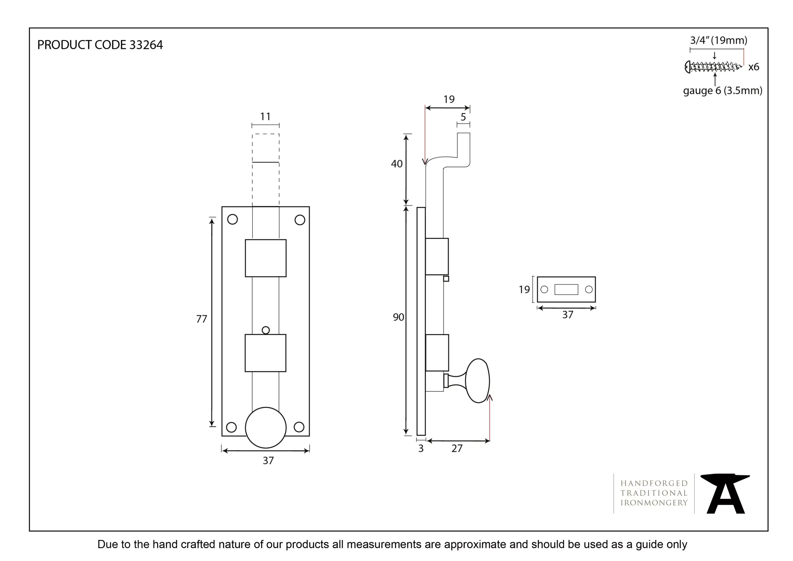 From the Anvil Beeswax 4″ (100mm) Cranked/Necked Knob Door Bolt | 33264