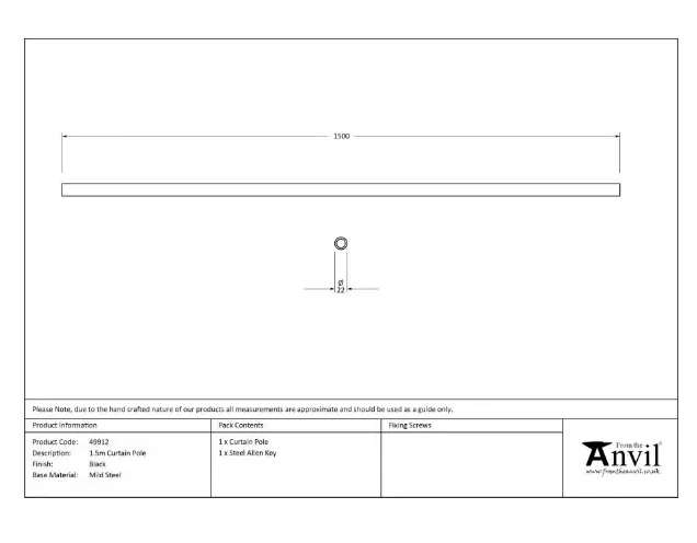 From the Anvil Black 1500mm Curtain Pole | 49912
