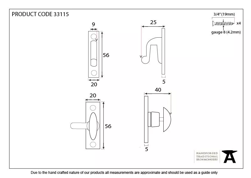 - Fixing plate: 56mm x 20mm