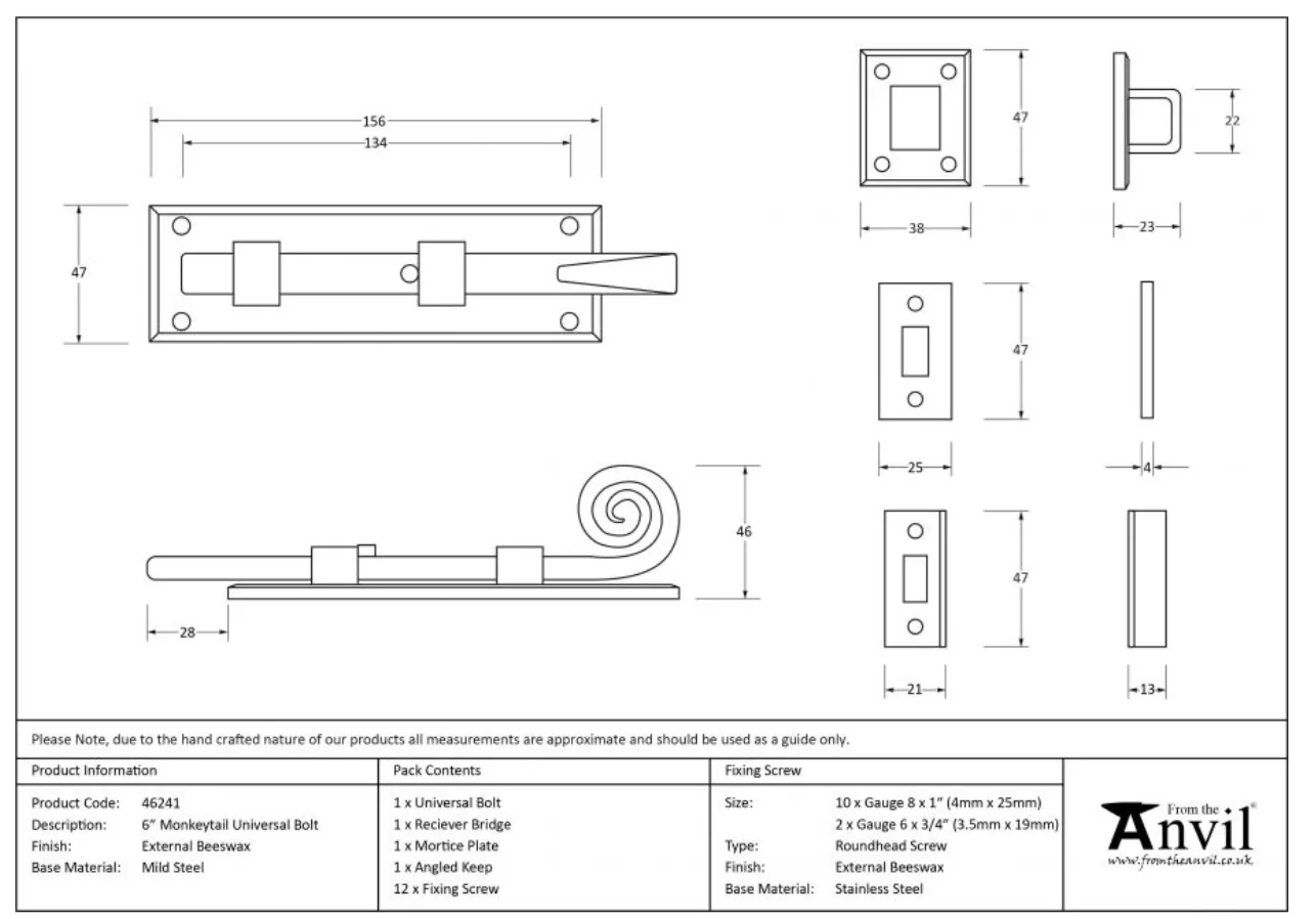From the Anvil External Beeswax 6″ (150mm) Universal Bolt | 46241
