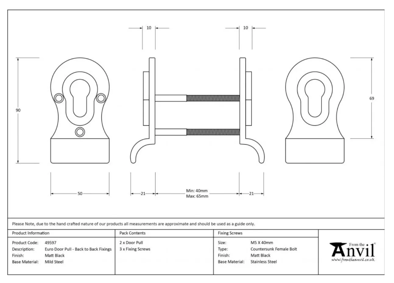 From the Anvil Matt Black Back to Back Euro Cylinder Pull | 49597