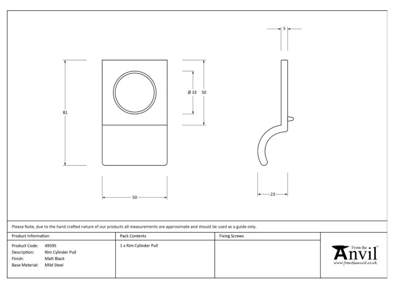 From the Anvil Matt Black Rim Cylinder Pull | 49595