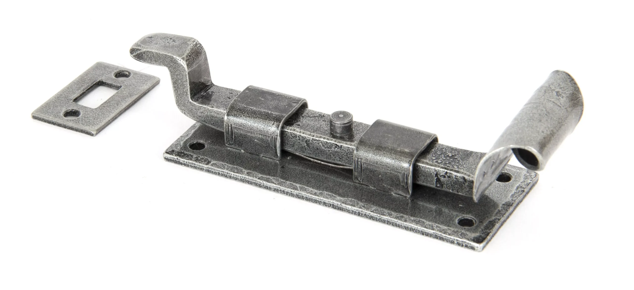 From the Anvil Pewter 4″ (100mm) Cranked/Necked Fishtail Door Bolt | 33659