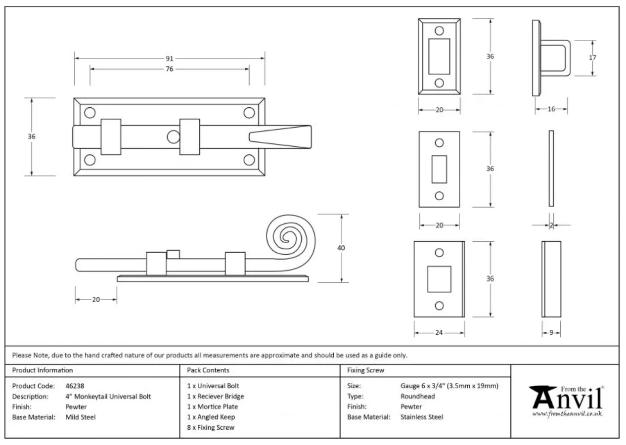 From the Anvil Pewter 4″ (100mm) Universal Bolt | 46238